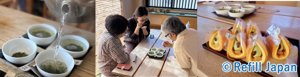 こちらでは茶匠・前田社長によるワークショップを受講。同じ茶葉でも蒸し方や焙煎の有無でどのように変わるか、実際に香りをかいで比べてみて、自分の好みを探る体験をしました。さらに11種類のお茶の飲み比べやお茶のワッフルを味わいながら、おいしいお茶の入れ方のコツなども学びました。